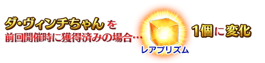 2019年に開催された、期間限定ロード・エルメロイⅡ世の事件簿×Fate/Grand Orderコラボレーションイベント「レディ・ライネスの事件簿」で同じコマンドコードを獲得している場合、コマンドコードに代わりレアプリズムまたはマナプリズムを獲得できます。