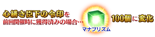 ・前回開催時に「コマンドコード」を獲得している場合、本イベントの対象ミッションで「コマンドコード」に代わりレアプリズムまたはマナプリズムを獲得できます。
