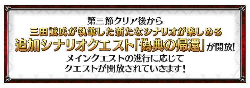 メインクエスト 第十節(後編)~エピローグ 追加シナリオクエスト「偽典の帰還」 フリークエスト |