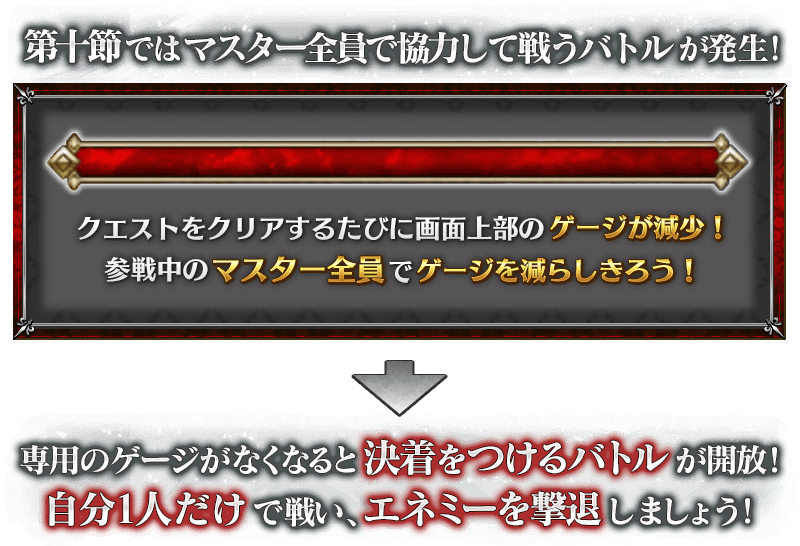 第十節では、イベントに参加中のマスター全員で強大なエネミーを撃退するレイドバトルが発生します。