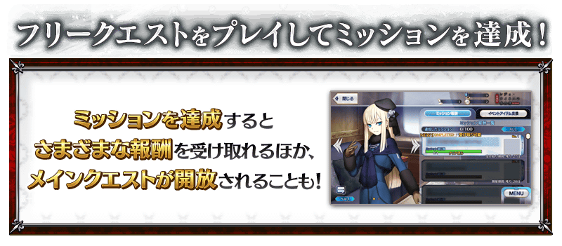 ※クエストクリア報酬、戦利品、マスターEXP、魔術礼装EXP、絆ポイントを獲得できるのは初回クリア時のみです。