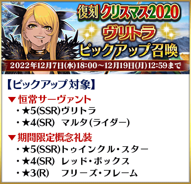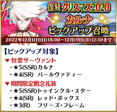 ◆「復刻 クリスマス2020ピックアップ召喚」期間◆