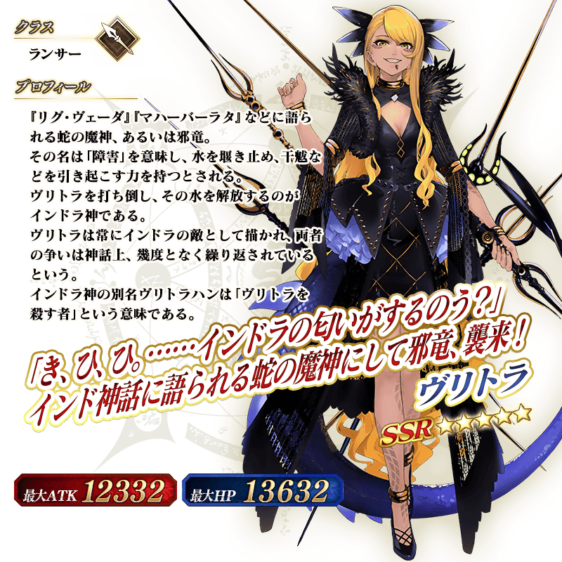 ※上記の「★5(SSR)ヴリトラ」のイラストは霊基再臨第2段階のものです。