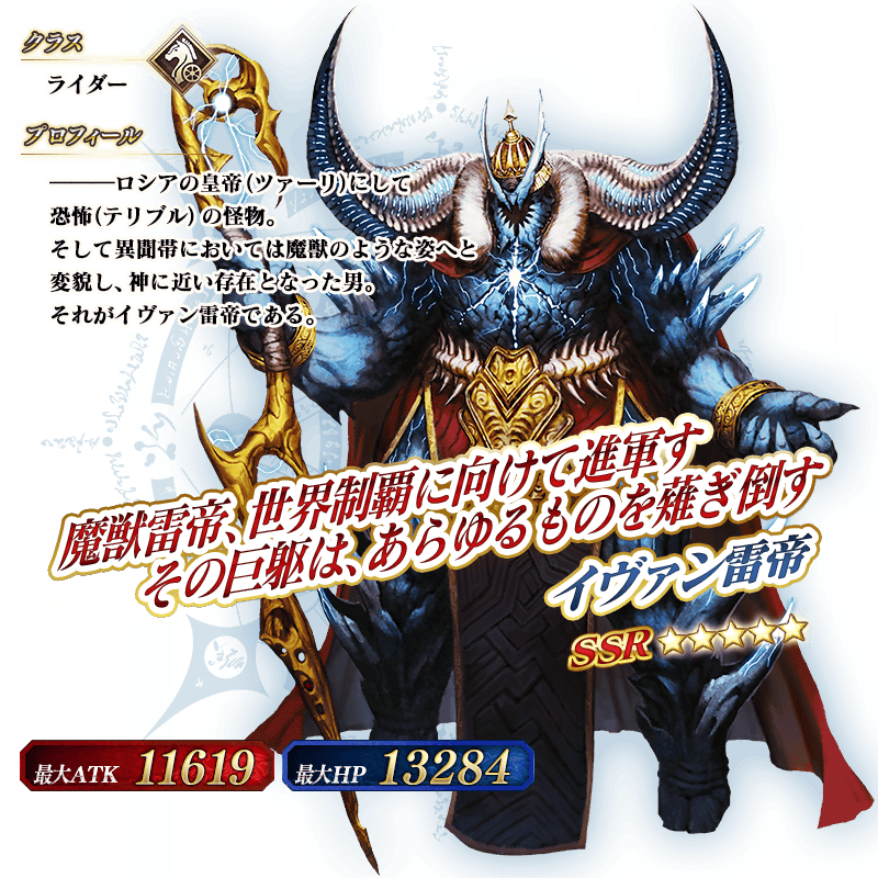※上記の「★5(SSR)イヴァン雷帝」のイラストは霊基再臨第2段階のものです。