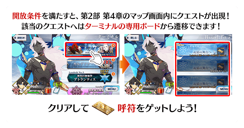 ※対象サーヴァントを所持していない場合、クエストは出現しません。