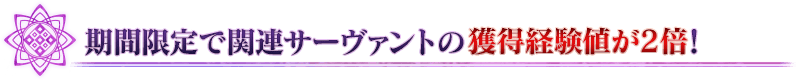 ■期間限定で関連サーヴァントの獲得経験値2倍!