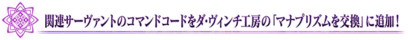 ■関連サーヴァントのコマンドコードをダ・ヴィンチ工房の「マナプリズムを交換」に追加!