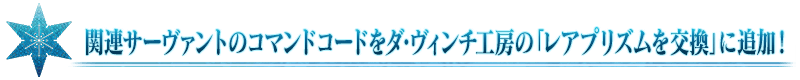 ■関連サーヴァントのコマンドコードをダ・ヴィンチ工房の「レアプリズムを交換」に追加!