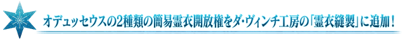 ■オデュッセウスの2種類の簡易霊衣開放権をダ・ヴィンチ工房の「霊衣縫製」に追加!