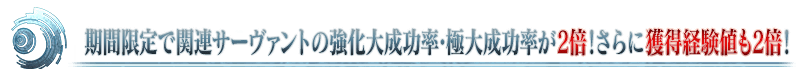 ■関連サーヴァントの強化大成功率・極大成功率が2倍!さらに獲得経験値も2倍!
