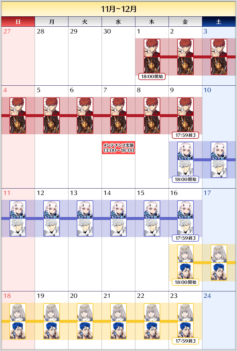 ※12月6日(火) 18:00画像更新 ※各召喚におけるボーナス召喚のカウントは、それぞれ個別にカウントされますのでご注意ください。 ※それぞれのピックアップ召喚は、開催期間が異なりますのでご注意ください。 ※本召喚では、各召喚にてピックアップされている★5(SSR)サーヴァントのみが「確定召喚」による召喚の対象となります。