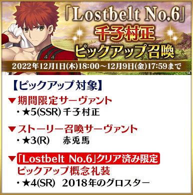 ◆『「Lostbelt No.6」ピックアップ召喚』のご注意◆