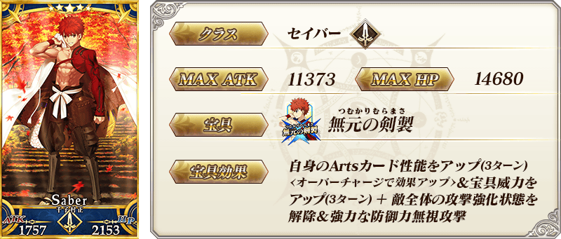 ※特定の霊基再臨段階解放前は、「変化後の宝具カード」のイラストの一部が非表示になっております。