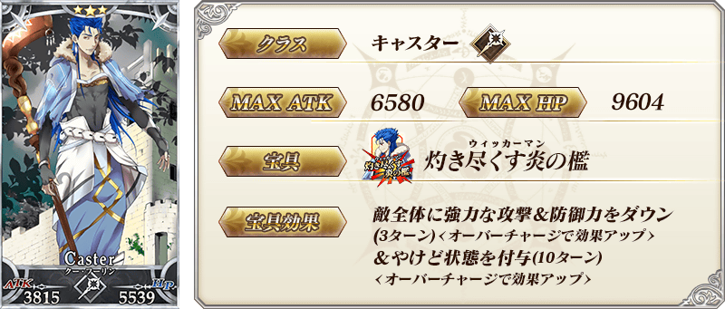 ※上記の「★3(R)クー・フーリン(キャスター)」のセイントグラフは霊基再臨第2段階のものです。
