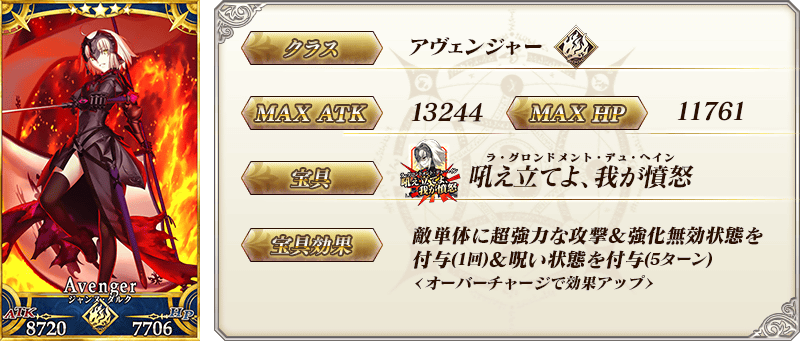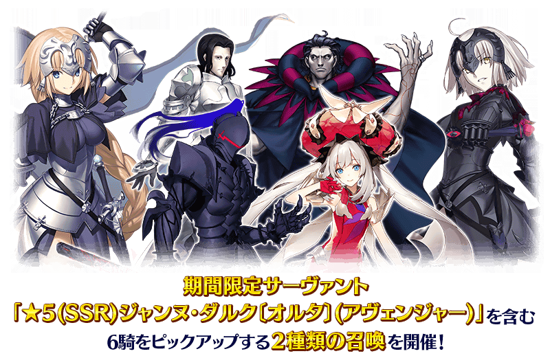 ※上記の「★5(SSR)ジャンヌ・ダルク〔オルタ〕(アヴェンジャー)」のイラストは霊基再臨第2段階のものです。