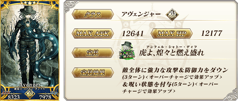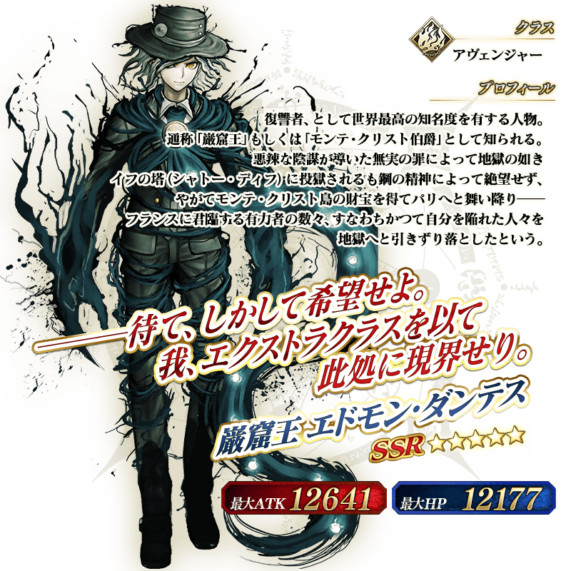 ※上記の「★5(SSR)巌窟王 エドモン・ダンテス」のイラストは霊基再臨第2段階のものです。