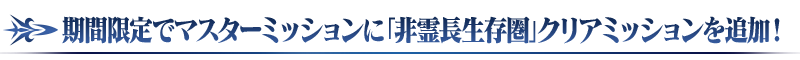 下記の期間中、「マスターミッション」の「限定」タブ内に、期間限定で「非霊長生存圏 ツングースカ・サンクチュアリ」のクリアを目的とする、「【第2部 トラオム開幕直前 第2弾】ミッション」が追加されます。