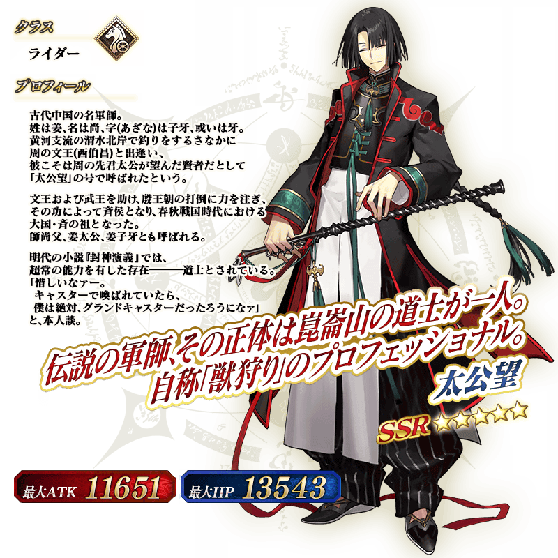 ※上記の「★5(SSR)太公望」のイラストは霊基再臨第2段階のものです。