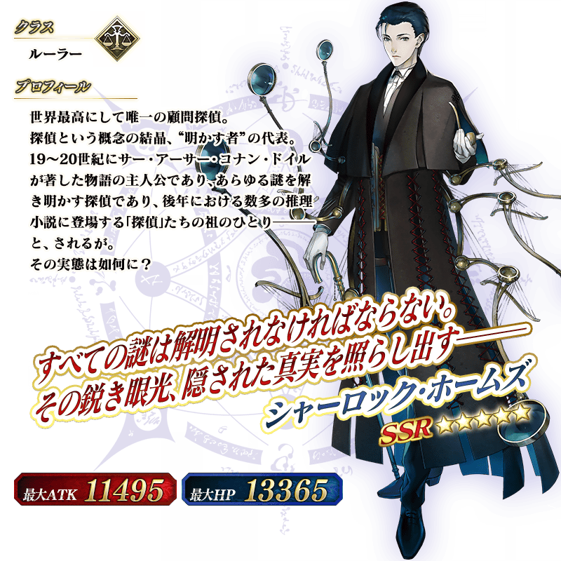 ※上記の「★5(SSR)シャーロック・ホームズ」のイラストは霊基再臨第2段階のものです。