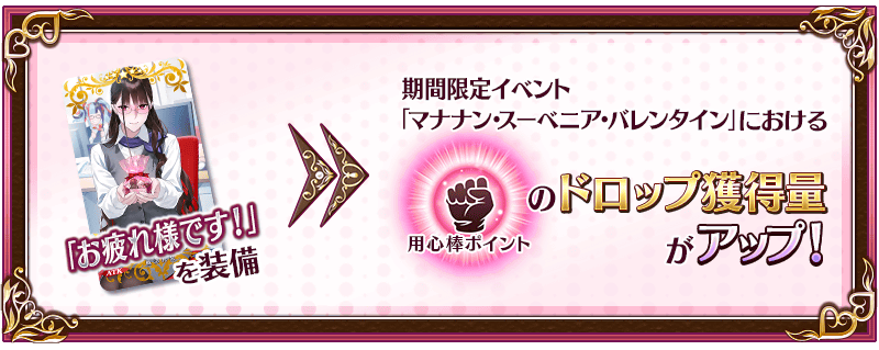 また、サーヴァントからもらった「バレンタインのプレゼント」の概念礼装を装備することでも、用心棒ポイントのドロップ獲得量がアップします!