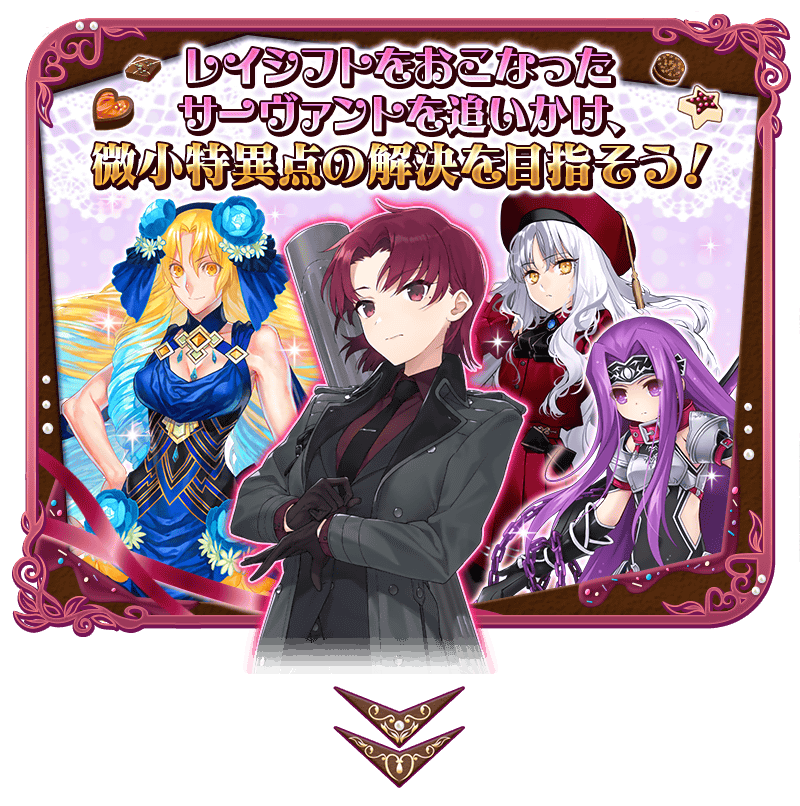 ※「ロックオンチョコ」と交換したプレゼントと、「サプライズチョコ」と交換したプレゼントで、交換時のイベント内容および入手できる概念礼装に差異はございません。