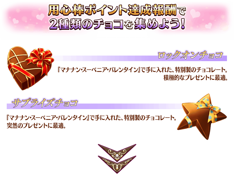 ※イベントアイテム交換期間終了後「ロックオンチョコ」「サプライズチョコ」は消滅します。