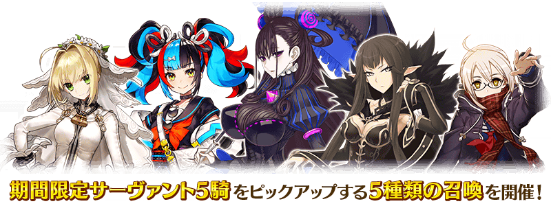 ※上記5騎のピックアップ召喚は、それぞれ別の召喚となります。
