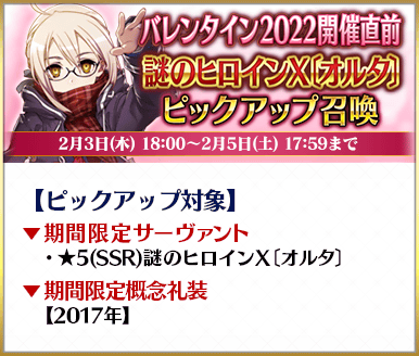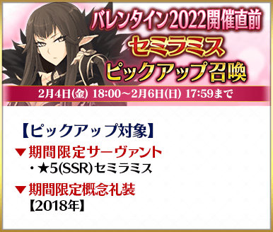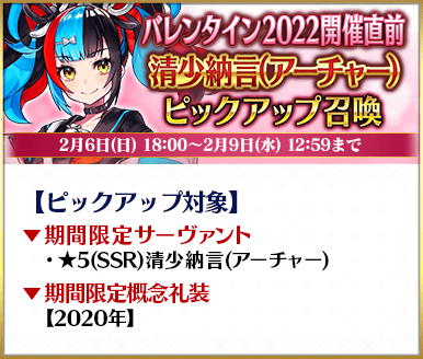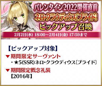◆「バレンタイン2022開催直前ピックアップ召喚」期間◆