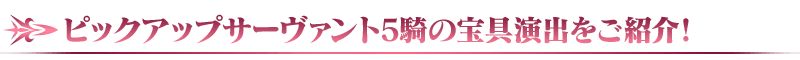 本召喚にてピックアップされている、サーヴァント5騎の宝具演出を紹介いたします!