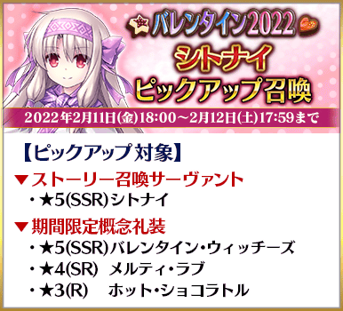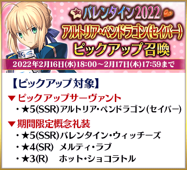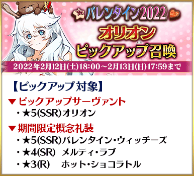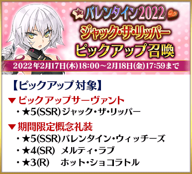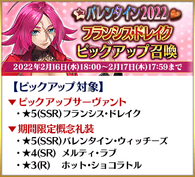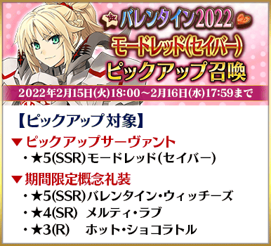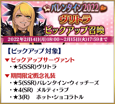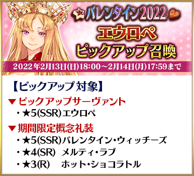 ◆「バレンタイン2022ピックアップ召喚」期間◆