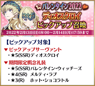 ◆バレンタイン2022ピックアップ召喚のご注意◆