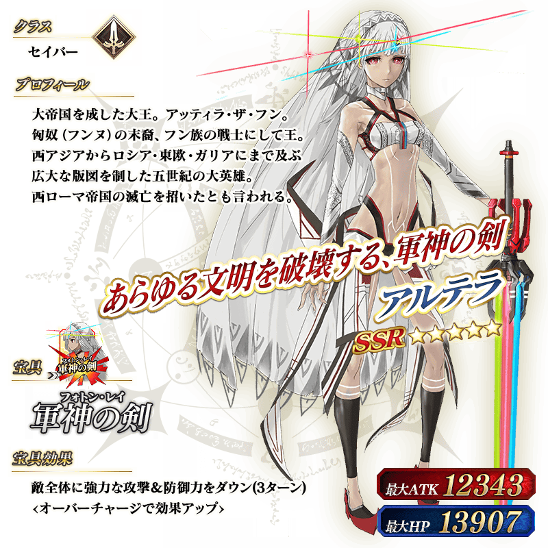 ※上記の「★5(SSR)アルテラ」のイラストは霊基再臨第2段階のものです。