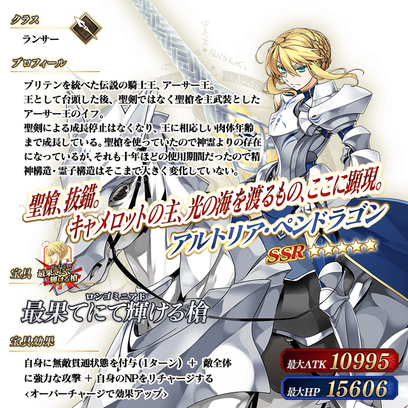 ・★5(SSR)アルトリア・ペンドラゴン(ランサー)