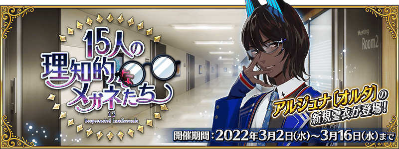 期間限定イベントでは、イベントアイテム交換で「★5(SSR)アルジュナ〔オルタ〕」の霊衣「生徒会長たるアルジュナ」の開放権のほか、13騎のメガネ霊衣の開放権を手に入れることができます。