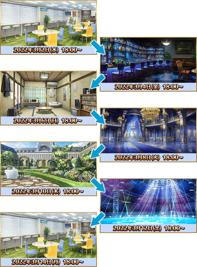 2022年3月2日(水) 18:00~3月16日(水) 12:59の間、最初にログインがおこなわれた際に「ホワイトデー・スペクタクルズ入館証」がプレゼントボックスに贈られます。