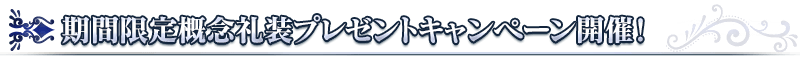 ※「霊衣縫製」に追加される霊衣「Camelot & Co」開放権は恒常となり、交換期限はありません。 ※すでに交換対象の霊衣開放権を取得されている方については、交換することができません。 ※霊衣「Camelot & Co」開放権をレアプリズム5個と交換後に霊衣開放権交換無料化の条件を達成した場合は、交換に使用したレアプリズム5個がプレゼントボックスに返還されます。
