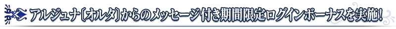 下記の期間中、初回ログイン時にアルジュナ〔オルタ〕からのメッセージも再生されるログインボーナスが実施されます!