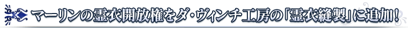 ※「★5(SSR)マーリン」を未所持の場合、霊衣開放権の入手はできますが、霊衣開放はおこなえませんのでご注意ください。