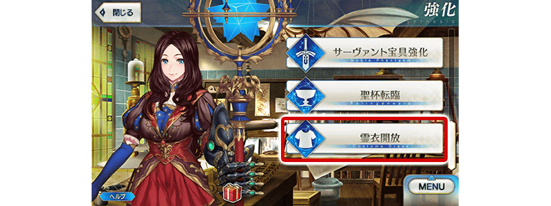 ※「霊衣開放」後は自動でバトルキャラやアイコンが切り替わります。「霊衣開放」前の状態に戻したい場合や、他の再臨段階に変更したい場合は、サーヴァント詳細画面より変更することができます。 ※「霊衣開放」をおこなってもクラスやパラメータなどに変化はありません。