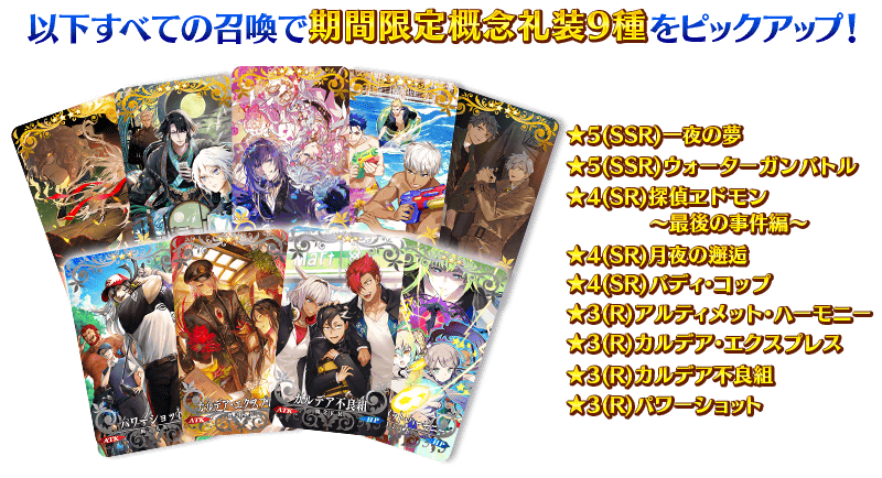 本召喚にてピックアップされている期間限定概念礼装9種は、ボイス付きの概念礼装となります。