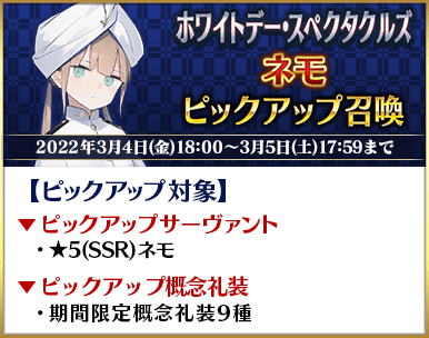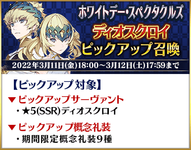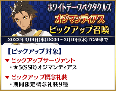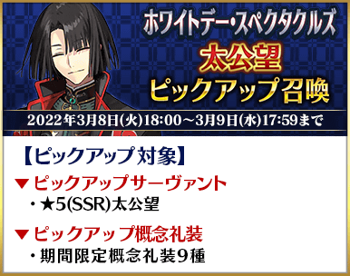 2022年3月8日(火)18:00~3月9日(水)17:59までのピックアップ召喚