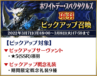 ◆「ホワイトデー・スペクタクルズピックアップ召喚」期間◆