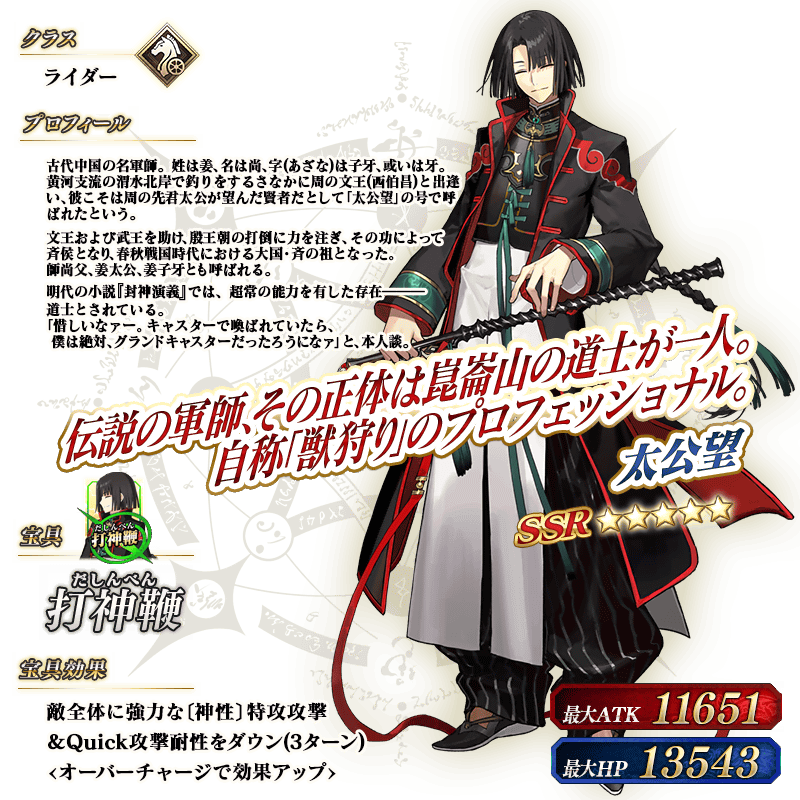 ※上記の「★5(SSR)太公望」のイラストは霊基再臨第2段階のものです。