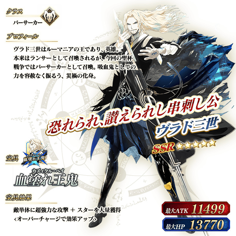 ※上記の「★5(SSR)ヴラド三世(バーサーカー)」のイラストは霊基再臨第2段階のものです。