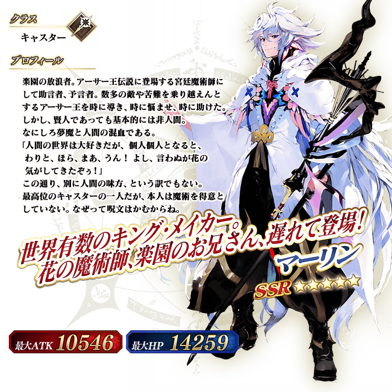 ※上記の「★5(SSR)マーリン」のイラストは霊基再臨第2段階のものです。