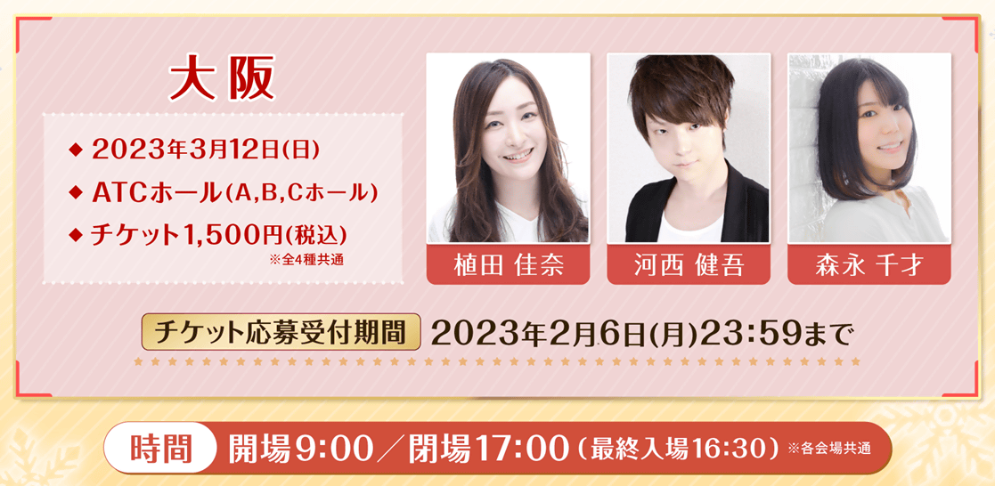 2023年3月12日(日)に大阪南港ATCホール(A,B,Cホール)にて開催予定の「Fate/Grand Order ウィンターパーティー 2022-2023」のチケット応募受付中です。