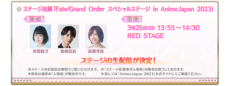 そして、「Fate/Grand Order スペシャルステージ in AnimeJapan 2023」の配信が決定いたしました。