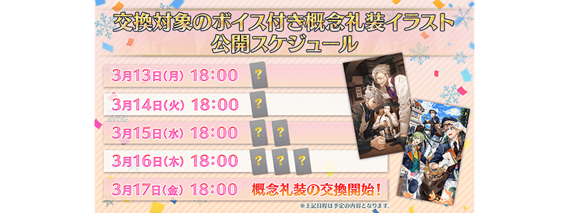 また、交換対象のボイス付き期間限定概念礼装のイラストを3月13日(月)より順次公開を予定しております。