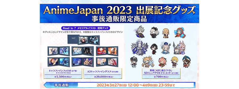 「AnimeJapan 2023」出展記念グッズが2023年3月27日(月) 12:00より「ANIPLEX+」にて事後通販の受付を開始いたします。
