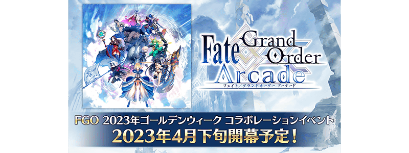 「Fate/Grand Order Arcade」とのコラボレーションイベントは2023年4月下旬の開幕を予定しております。
